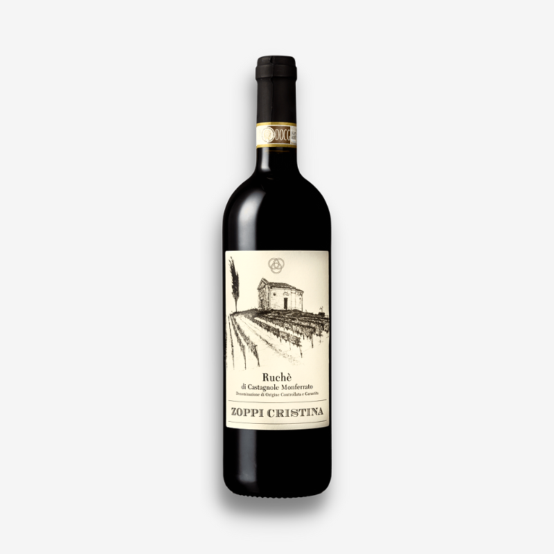 Ruchè elegante y floral, afinado en acero. Violetas, rosas, geranio, frutas rojas y especias. Suave y persistente, ideal con pasta rellena, asados y quesos azules.