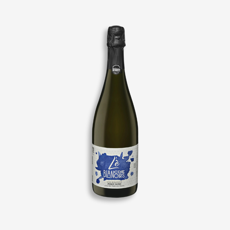 Alta Langa bio méthode classique, 30 mois sur lies. Or brillant, bulles fines, notes de miel, fruits secs et longue finale citronnée.